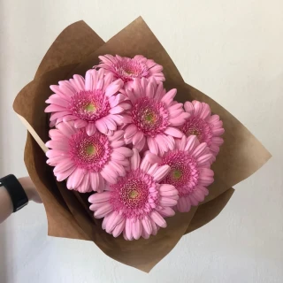 Этот букет из прекрасных гербер, словно застывший в танце солнечных лучей, исключительно привлекателен своей яркостью и позитивом. Каждый цветок тщательно подобран и сочетается с другими, создавая визуальное великолепие. Упаковка из крафтовой бумаги придает нотку натуральности и простоты, что придает естественную красоту герберам. Этот букет станет подарком для любого повода, принесет свет и радость в жизнь каждому, кто его получит.